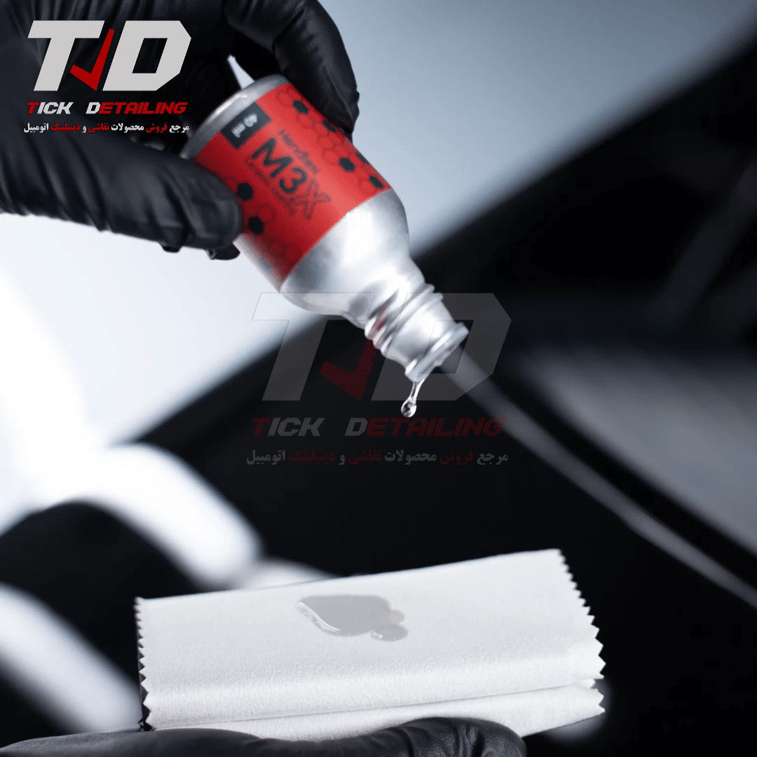 2️⃣ اعمال سرامیک هندلکس: چند قطره روی دستمال میکروفایبر بریزید و به آرامی روی سطح بکشید.