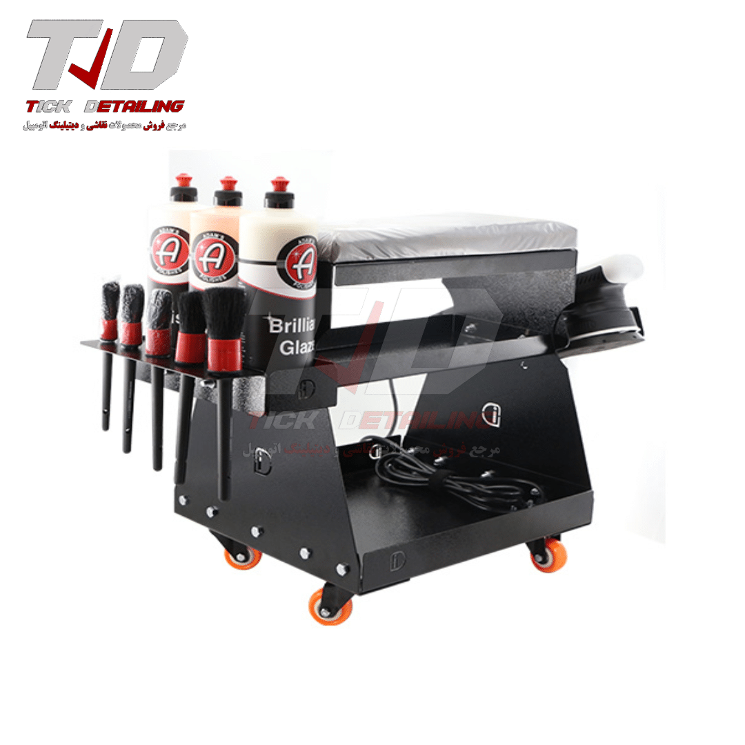 صندلی را در نزدیکی محل کار خود قرار دهید و تجهیزات مورد نیاز خود را روی نگهدارنده قرار دهید. حین انجام عملیات دیتیلینگ، از چرخش 360 درجه و ارتفاع مناسب صندلی برای راحتی حرکت و کاهش خستگی استفاده کنید.