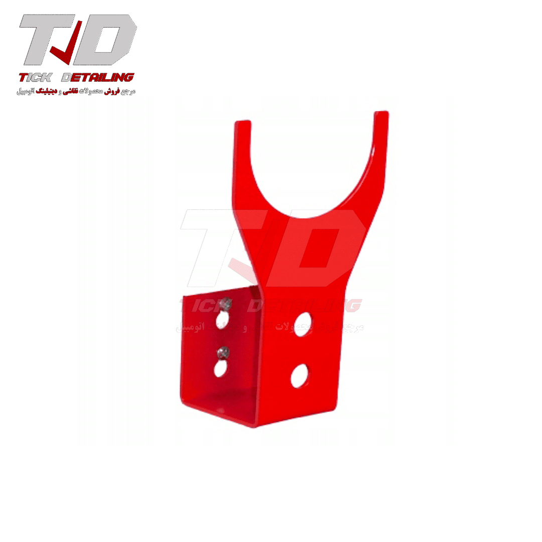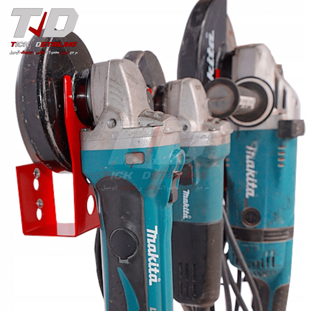 هولدر دیواری شاخی دستگاه پولیش خودرو رنگ قرمز، مقاوم، ضد زنگ، با طراحی شیک و مناسب برای نظمدهی حرفهای به فضای کارگاه.