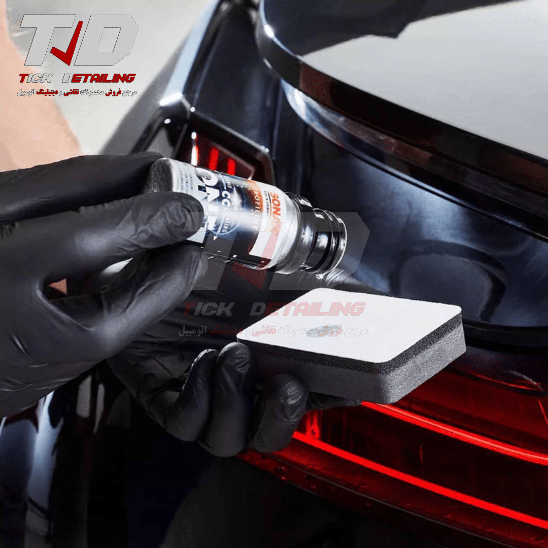2️⃣ اعمال سرامیک: با اپلیکاتور سهگانه، مقدار لازم از SONAX Hybrid Coating CC One را روی سطح بمالید.