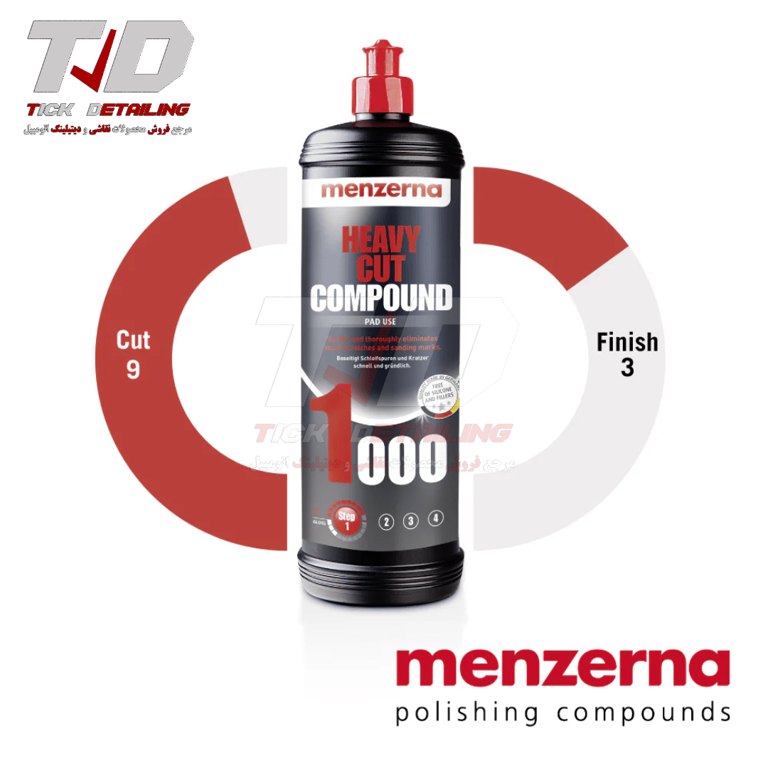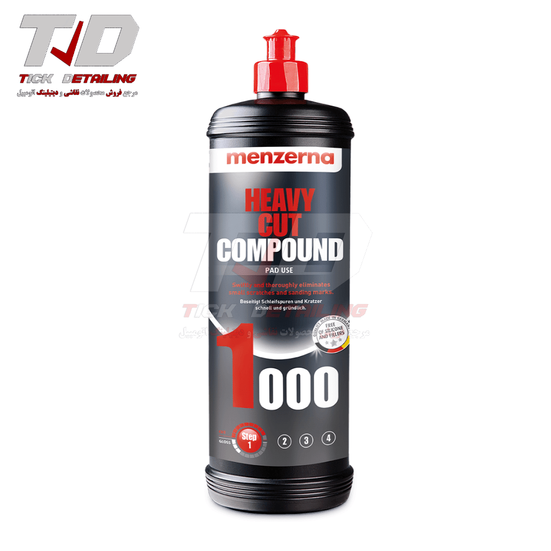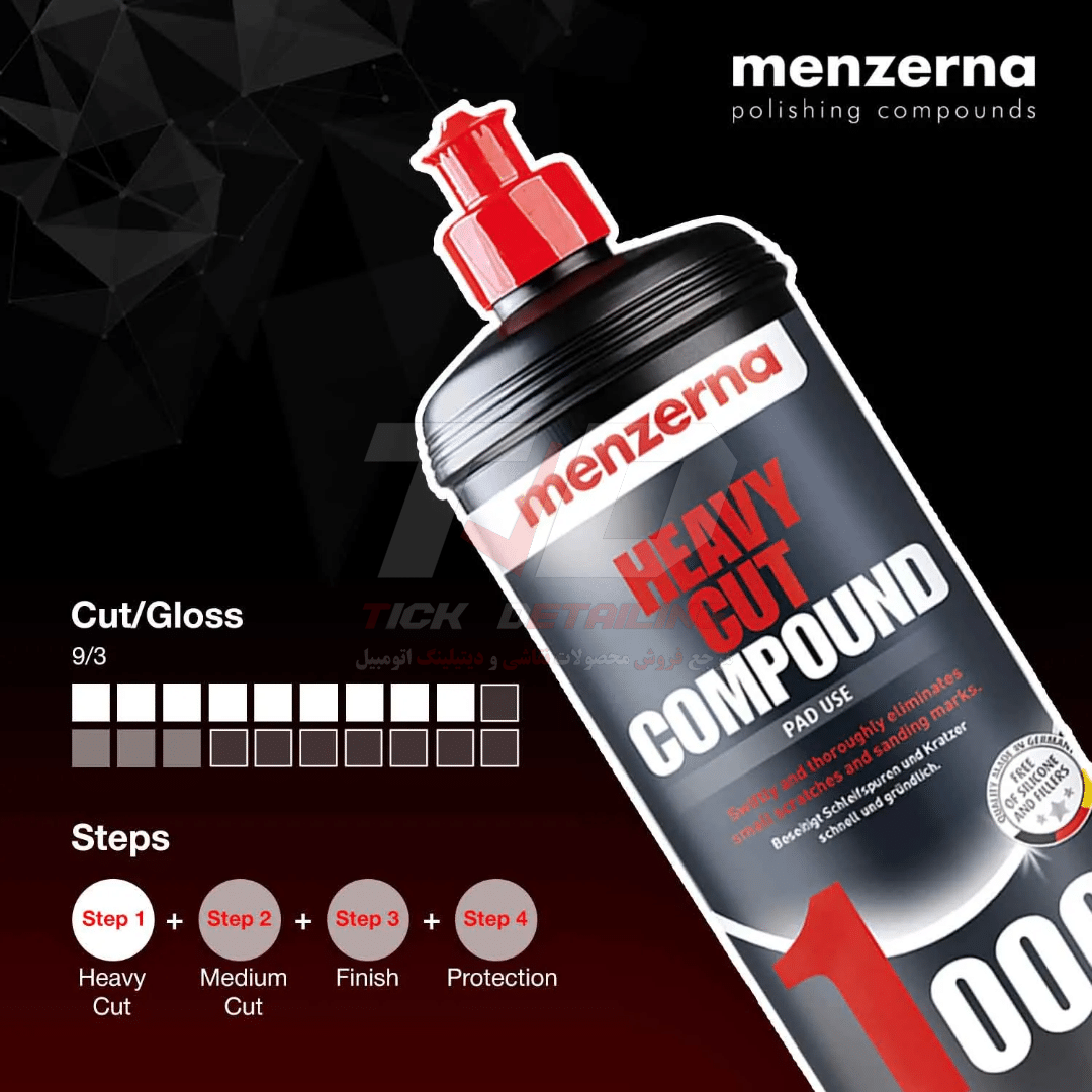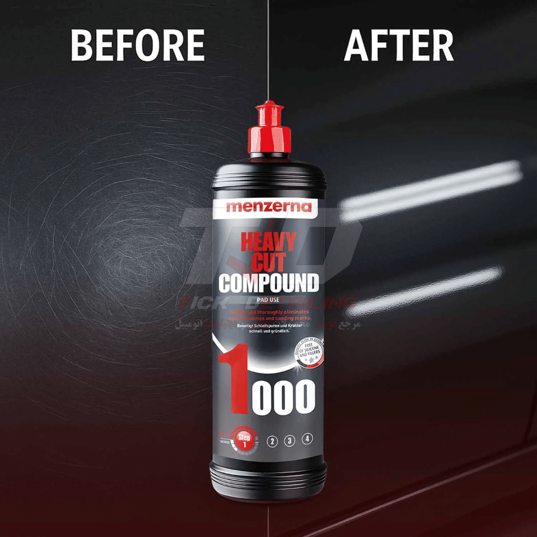 Menzerna Heavy Cut Compound 1000 1L یک پولیش زبر با تکنولوژی نانو است که خراشهای سطحی و عمقی را از بین میبرد، بدون ایجاد گرد و غبار و بدون آسیب به رنگ خودرو. مناسب دیتیلینگ حرفهای و استفاده با پد زبر.